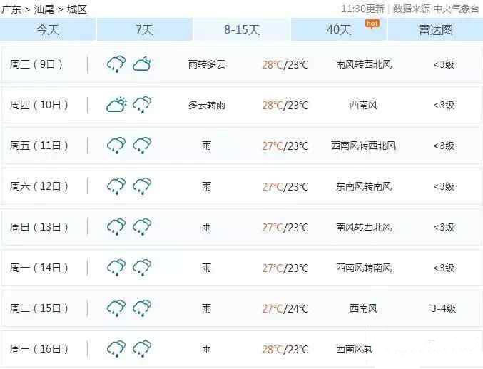 夏天来了 每次化好妆美美的出门 一会就…… 未来的天气以雨天为主 阵雨→中雨→雷阵雨转大雨→大雨转小雨 气温基本都在26-30°C,蒸桑拿的节奏啊 又是新一波的 火火火炎炎炎燚燚燚 雨雨雨雨雨雨雨雨雨 你说,五一过后 每天淅沥沥的雨水陪你上班 想想都觉得很“美好”…… 说真的,能让我冒雨湿身上班 无他的,就因为拥有中国人传统的特质 未来8-15天,汕尾依然都是 雨雨雨雨雨雨雨雨雨雨雨雨 晚上翻来覆去的睡 身上都是黏黏的 恨不得身上自备干燥剂 更别说内衣内裤衣服神马的 通通都不干!