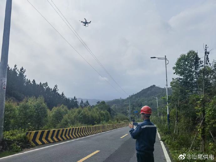 【山区线路巡视,无人机先行】4月20日,南方电网广东汕尾陆河供电局新田供电所配电运维班利用无人机航拍对山区线路进行巡视,省时省力了解线路缺陷和隐患,提高线路设备巡视效率,确保线路设备安全运行。