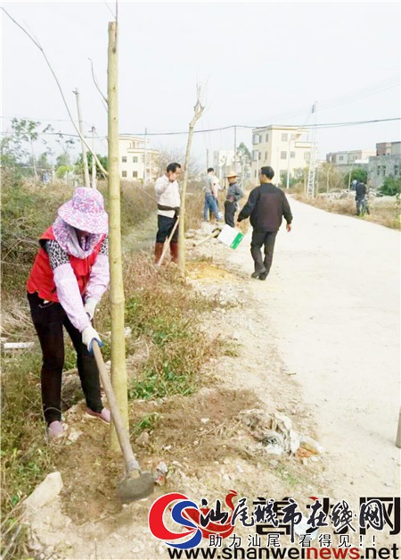 连日来,陆丰金厢镇顶蕉园村组织人员对村主干道两侧进行植树绿化,建设美丽乡村。图为村民在栽种林木。