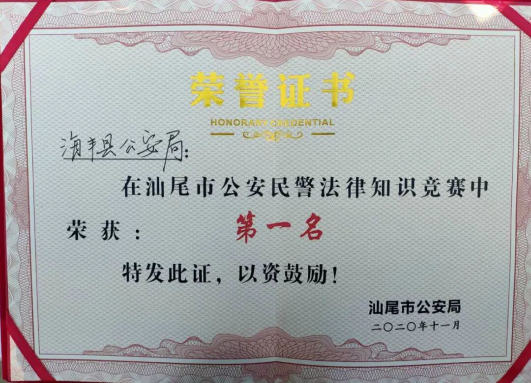 【喜讯】海丰公安勇夺全市公安民警法律知识竟赛第一名​