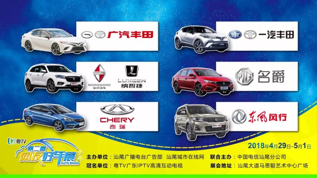 亲爱的广大车友们,第二届网友好车展,将于4月29日至5月1日盛大举行,我们期待您的到来! 1活动时间: 车展时间:4月29日-5月1日 10:00-21:00 好声音巅峰之夜时间:4月29日 19:49 菠萝音乐现场时间:4月30日 19:49 2车展地点: 3车展组织机构: 主办单位:汕尾广播电台广告部 汕尾城市在线网 联合主办:中国电信汕尾分公司 指导单位:粤TV广东IPTV高清互动电视 协办单位:汕尾亮睛工程眼科医院 4温馨提示: 由于展会现场人多事杂,请照顾好自己的小孩,看护好随身物品。本届车展地点为汕尾市区马思聪艺术中心广场,不存在任何其他分会场,也不存在其他外围特约机构。本届车展为促销惠民车展,提醒各位网友千万勿被人误导上当受骗。现场有问题可咨询展会工作人员。 |