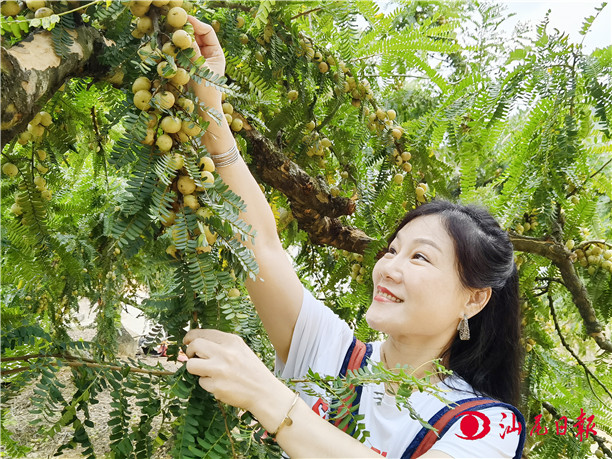 近日,游客在田墩村油柑基地采摘油柑。 汕尾日报记者 施育玲/摄 |
