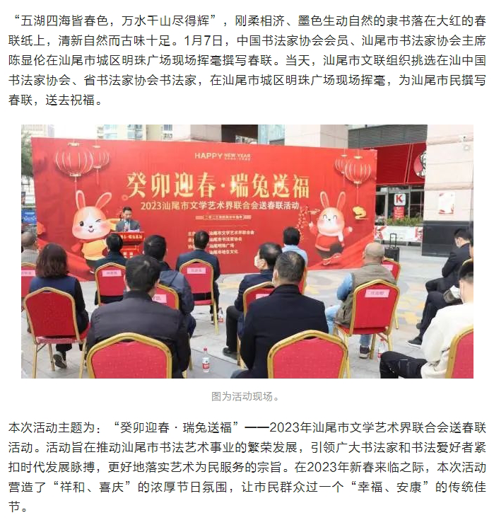 书法家现场挥毫写春联,为汕尾市民送祝福