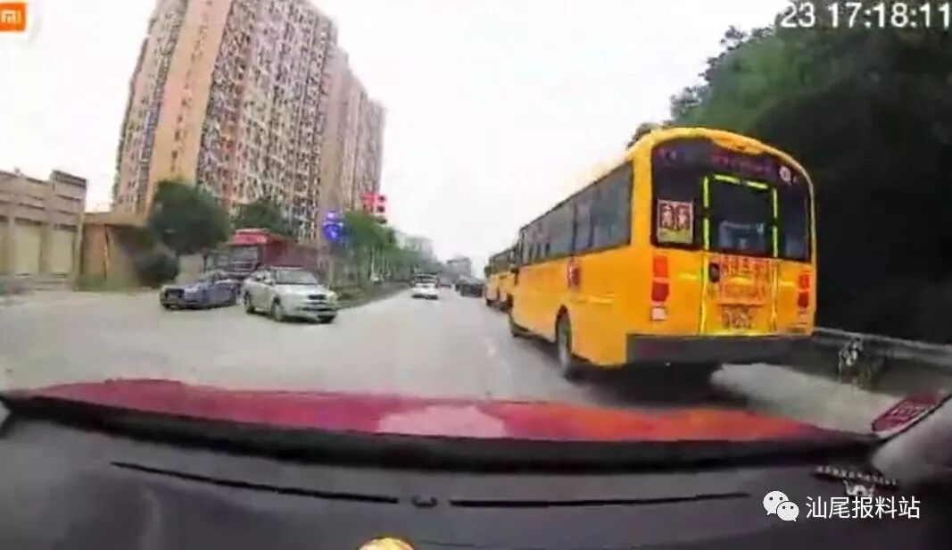 网友报料:2019年6月23日下午17点18分左右,在海丰县北三环路凯旋花园路段,一辆轿车在左侧车道正常行驶,当与右侧车道的一辆校车快要并行的时候,校车突然往左侧车道强行变道,险些与后方的轿车发生碰撞,这样的变道行为存在较大的安全隐患,严重威胁学生的生命安全。