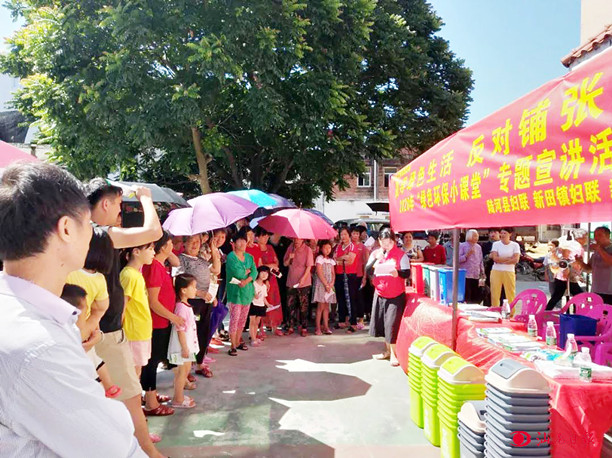 最近,陆河县妇联联合新田镇新田村妇女之家在新田大埔村开展“绿色环保小课堂”专题宣讲活动,县镇妇联干部、巾帼志愿者及当地群众等100多人参加。活动倡导绿色环保理念,动员广大妇女积极参与垃圾分类行动,自觉维护村居环境卫生,共建美丽家园。图为活动现场。